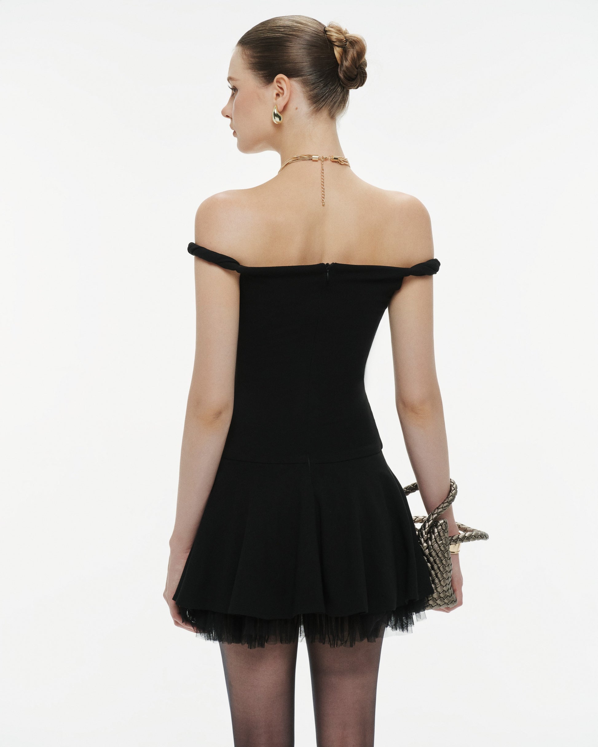 Black Twist-Shoulder Knit Dress