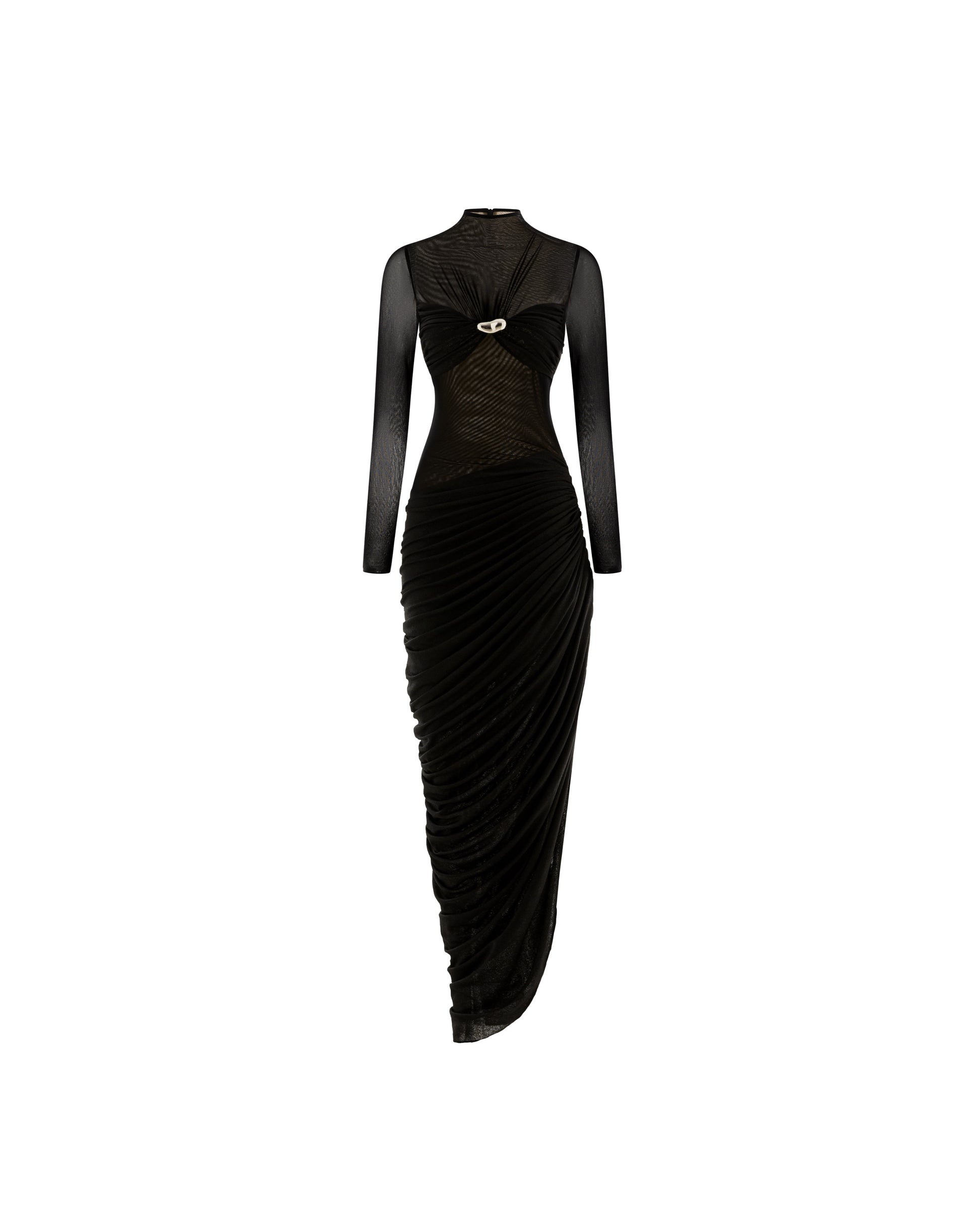 Long-Sleeve Ruched Bust Asymmetric Dress