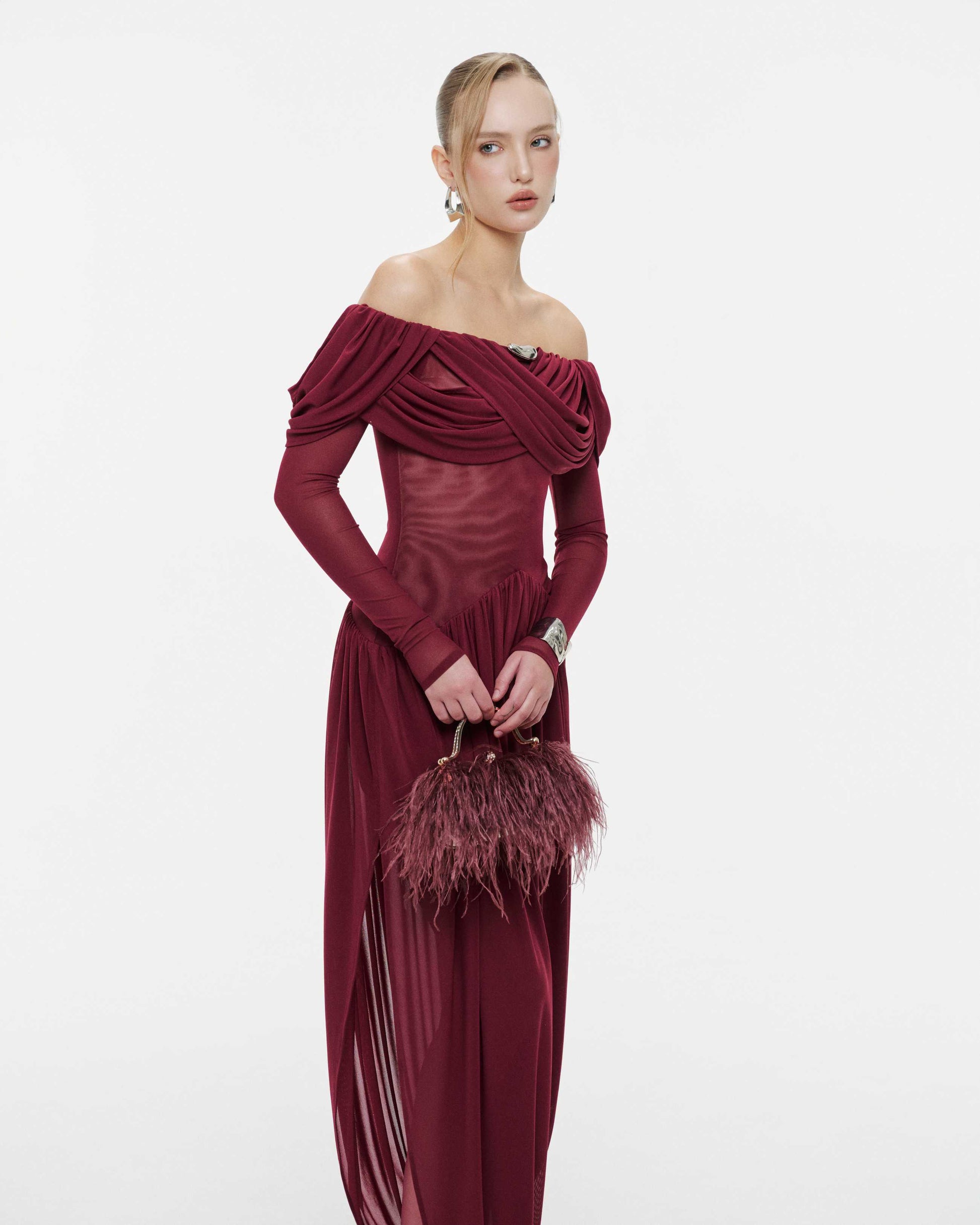 Off-Shoulder Draped Asymmetric Dress