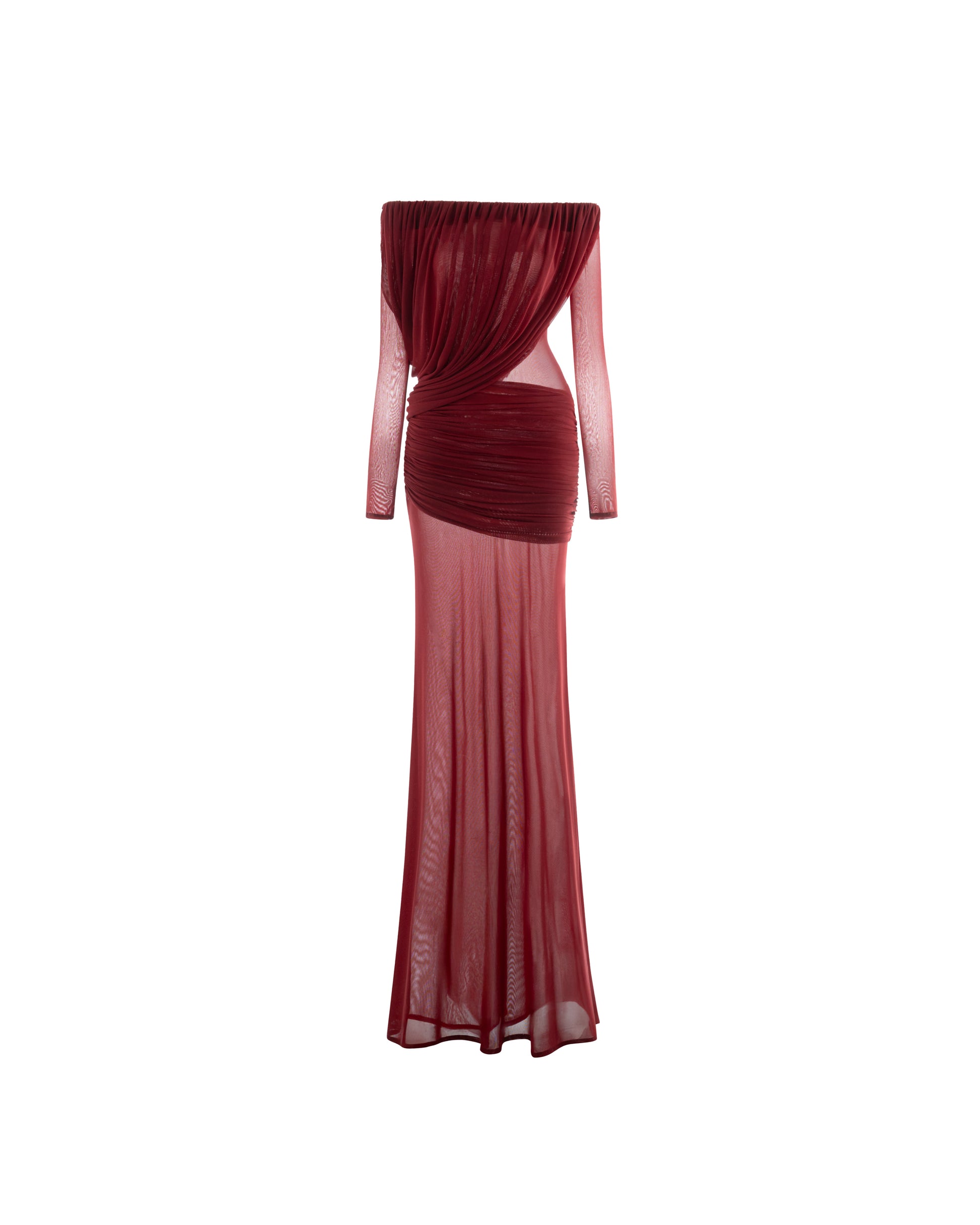 Off-Shoulder Draped Mesh Dress