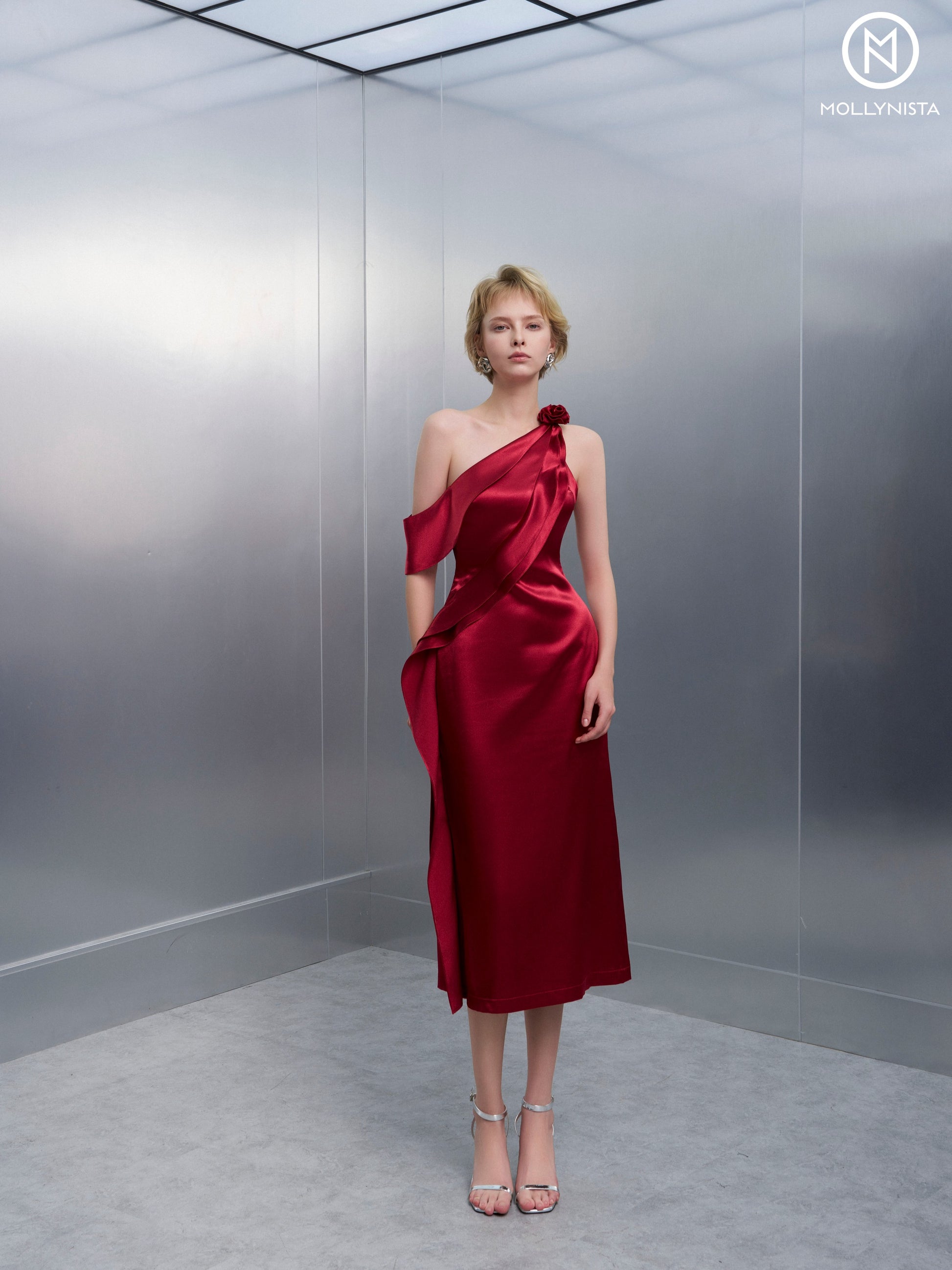 Red Silk Ruffle Dress